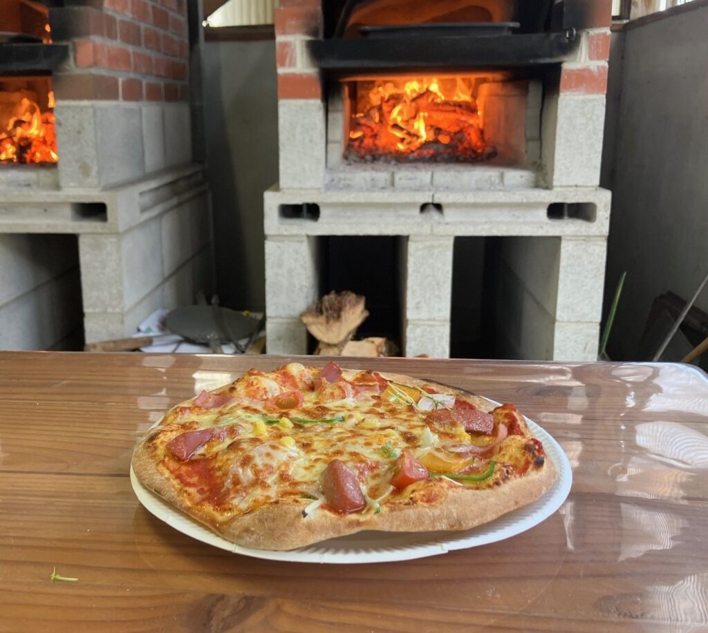 地元の食材を使用したピザ作りが体験できます。ピザ窯で薪を燃やして調理しますので、ピザの味は格別です。