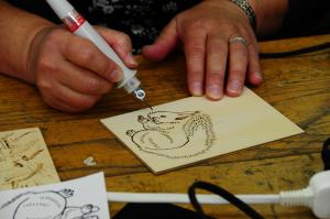 電熱ペンを使って、木にデザインや絵を描こう!